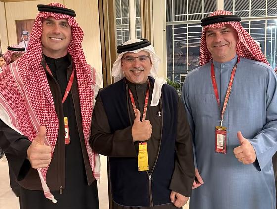 "Satisfação encontrar Sheik Salman bin Hamad Al Khalifa, Príncipe Herdeiro e Primeiro-Ministro do Reino do Bahrein, junto com senador Flávio Bolsonaro", afirmou o ex-deputado.