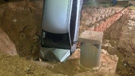 Conforme informações, o acidente foi registrado após uma rápida chuva, o que fez a motorista perder o controle do veículo enquanto seguia para buscar a filha. O carro derrapou e caiu na vala de uma obra nas proximidades do Hospital Central.