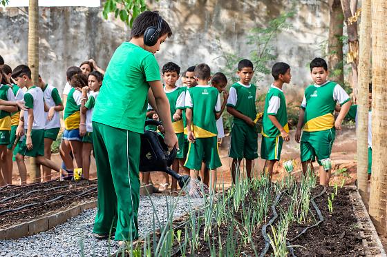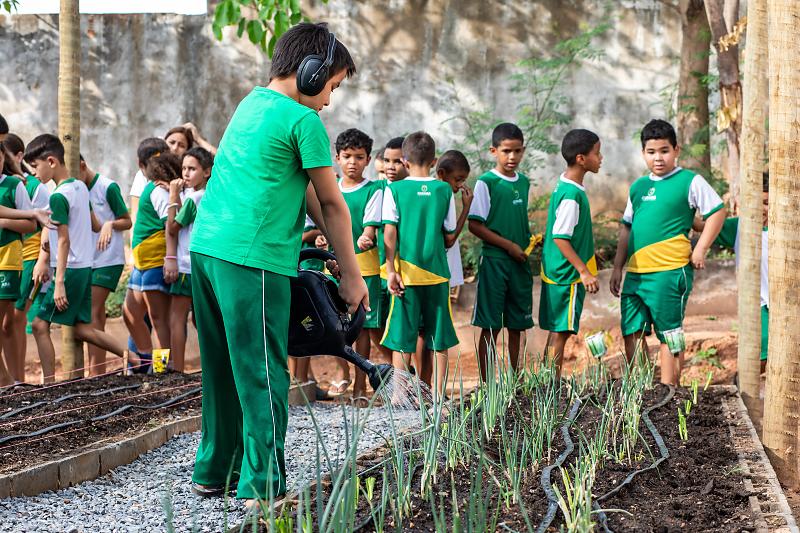 Os alunos PCDs também têm à disposição uma horta, onde são acompanhados por jardineiros e professores para aprender sobre o plantio de folhas e árvores, além de tirar dúvidas relacionadas à Biologia. O aluno Antônio dos Anjos, do 2º ano, elogia as atividades na horta. “Tem muita coisa legal para fazer fora do videogame. Cuidar da horta é um dos momentos mais legais da escola”, afirma.