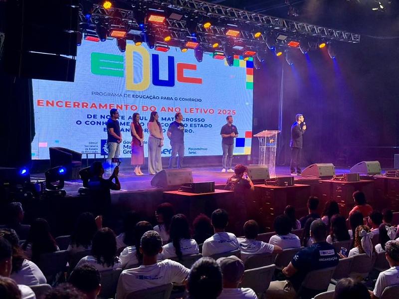A Secretaria de Estado de Educação (Seduc-MT), em parceria com o Serviço Nacional de Aprendizagem Comercial (Senac), realizou na tarde desta terça-feira (11.11), em Cuiabá, o evento de finalização do ano letivo do Programa Educ 2025. A iniciativa marca o encerramento das atividades pedagógicas dos estudantes do Ensino Médio da Rede Estadual que cursam o 5º itinerário formativo em Educação Profissional e Tecnológica.