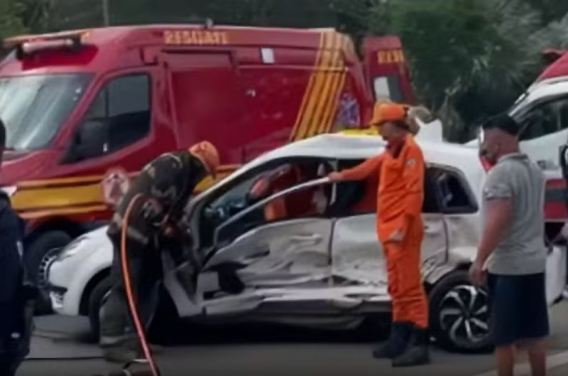 Um motorista de 43 anos avançou o sinal vermelho e bateu com uma caminhonete em um carro de passeio neste domingo (28), em Cuiabá. No veículo atingido estavam um idoso de 77 anos e duas mulheres, de 68 e 50 anos. Duas vítimas ficaram presas às ferragens, e outra foi arremessada para o canteiro central.