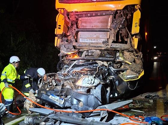 As informações são de que a caminhonete teria atingido a traseira do caminhão. Em seguida, a carreta que vinha logo atrás não conseguiu frear e atingiu a Hilux, que foi esmagada entre os dois veículos de carga.
