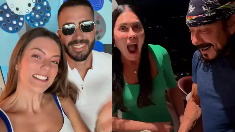 Depois, foi a vez de Pipo Marques e da influenciadora Mari Gonzalez receberem a surpresa. Em tom descontraído, Pati brincou: “É pros dois porque a gente já economiza”. Assim como os avós, o casal também se emocionou ao abrir a caixa.