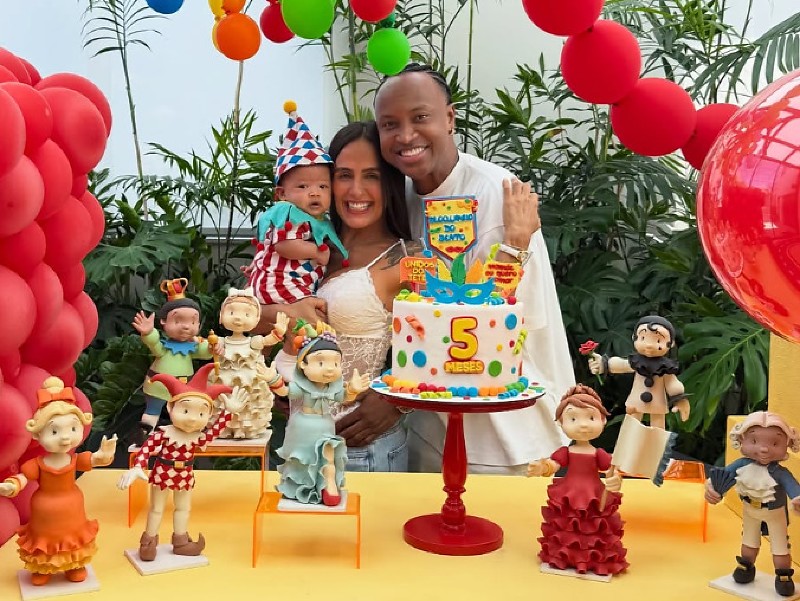 Bento, filho de Carol Peixinho e Thiaguinho, completou mais um mês de vida e ganhou uma festa temática e personalizada. O casal aproveitou o Carnaval para organizar o "Bloquinho do Bento".