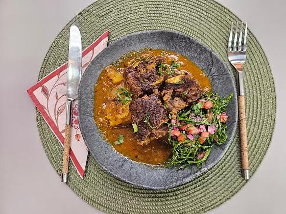 Costela com creme de aipim