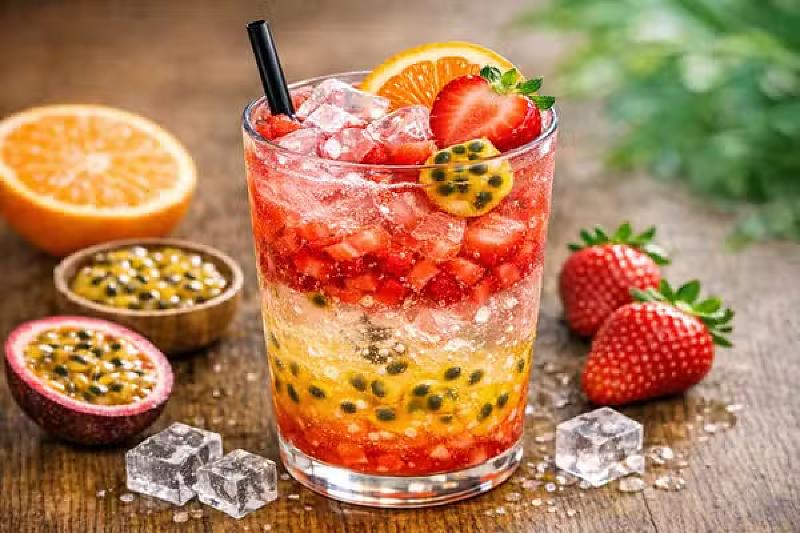 Drink de morango com maracujá sem álcool