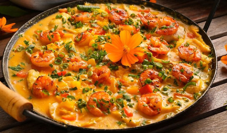 Lave bem o peixe e os camarões em água corrente, tempere-os com suco dos limões, alho, sal e pimenta. Em uma panela espalhe as 3 colheres de sopa de óleo de dendê, junte as postas de peixe e os camarões por cima, as rodelas de cebola, tomate, pimentão, o cheiro verde (opcional) e o restante do óleo de dendê. Cozinhe em fogo baixo até que ferva e deixe mais 5 minutos. Junte o leite de coco, assim que ferver novamente, desligue o fogo e sirva com arroz e farofa.