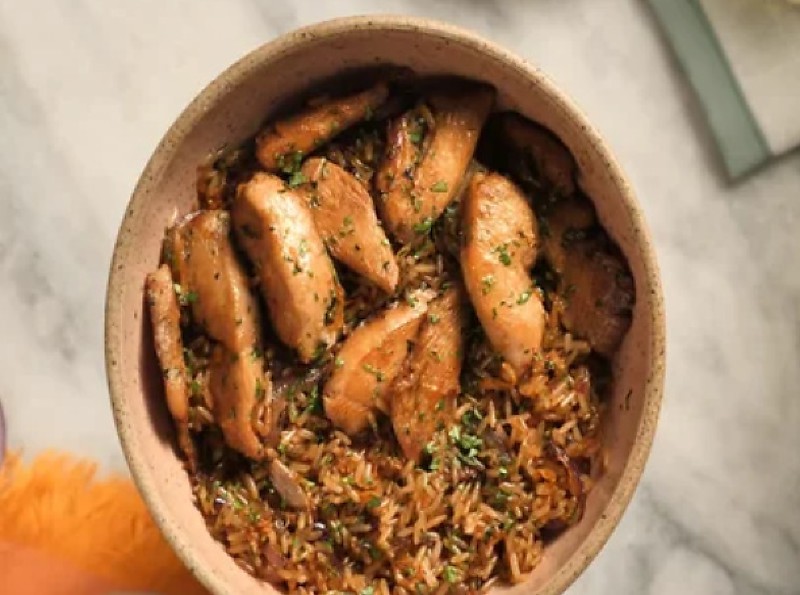 - Volte o frango para a frigideira, adicione shoyu (se usar) e ajuste o sal.