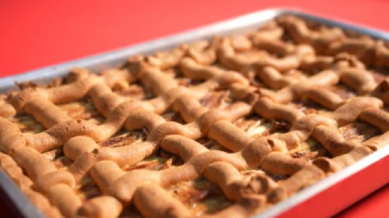 - 9Use o restante da massa para cobrir a torta e leve para assar no forno a 180ºC durante 40 minutos.