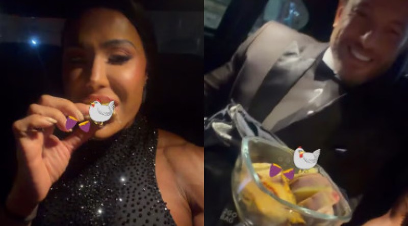 Gracyanne abriu o pote dentro do carro e é claro que filmou tudo para os seguidores. De boca cheia, a ‘influenciadora’ se derreteu pelo namorado, que tinha preparado tudo para ela. “Lindo e com uma marmita”, elogiou.