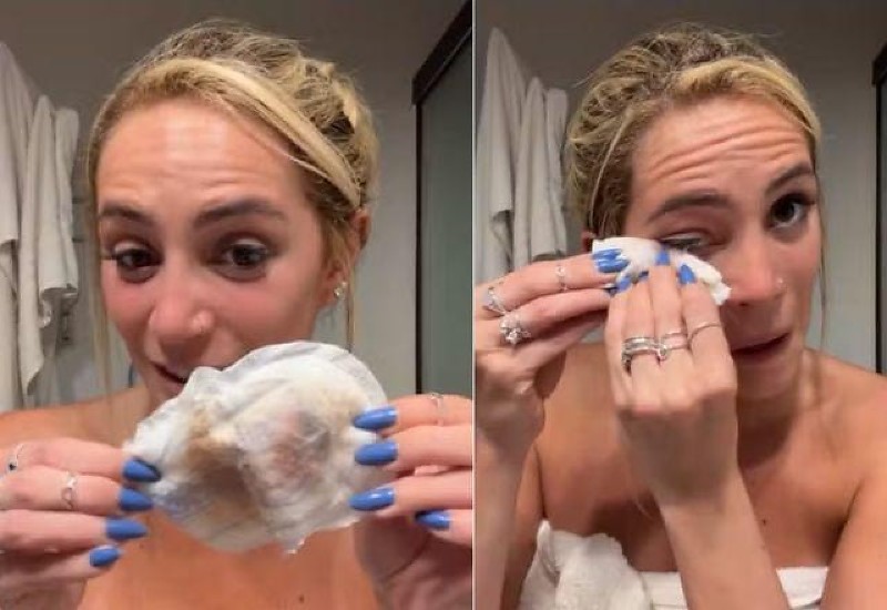 Em frente ao espalho, a famosa gravou um vídeo mostrando que estava tirando a make com um pedaço de absorvente.