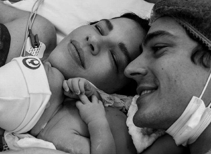 Na foto, o casal posou com o recém-nascido ainda na sala de parto. Na legenda, a atriz escreveu: "22.12.2025 Palo Rios Botelho Diniz d'Avila. Deus te abençoe, meu filho".