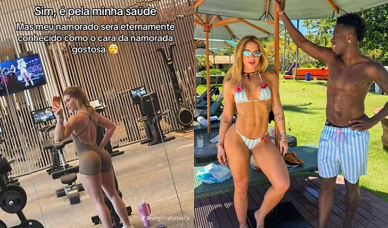 Virginia Fonseca, de 26 anos, voltou a movimentar as redes sociais ao compartilhar uma foto em que aparece exibindo o físico em dia e fazendo uma brincadeira sobre o namoro com o jogador Vini Jr., de 25 anos. Na publicação, a influenciadora comentou, em tom descontraído, que treina por saúde, mas brincou que o namorado “será eternamente conhecido como o cara da namorada gostosa”, arrancando risadas dos seguidores.