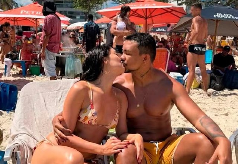 O cantor e ator compartilhou um registro em que aparece dando um beijão na atriz enquanto os dois renovavam o bronzeado. Para completar o clima do momento, o casal curtia a trilha sonora de "Beijo Doce", sucesso na voz de Péricles.