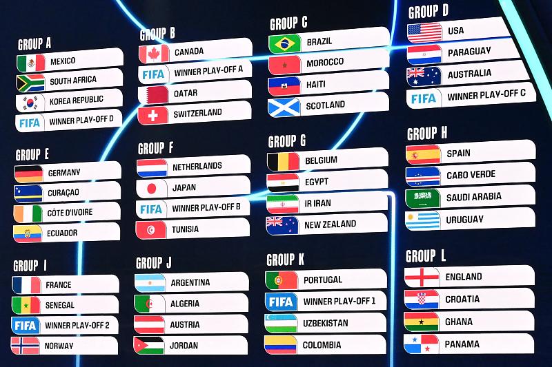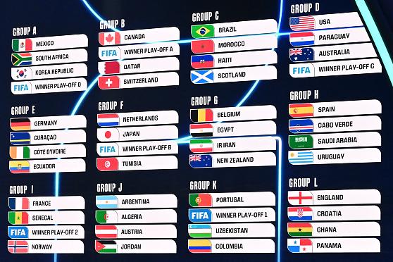 Campeã em 2022, no Catar, a Argentina caiu no Grupo J, com Argélia, Áustria e Jordânia. Já a atual vice França integra o Grupo I, que também terá Senegal, Noruega e um representante da repescagem Intercontinental 2 (Bolívia, Suriname ou Iraque).