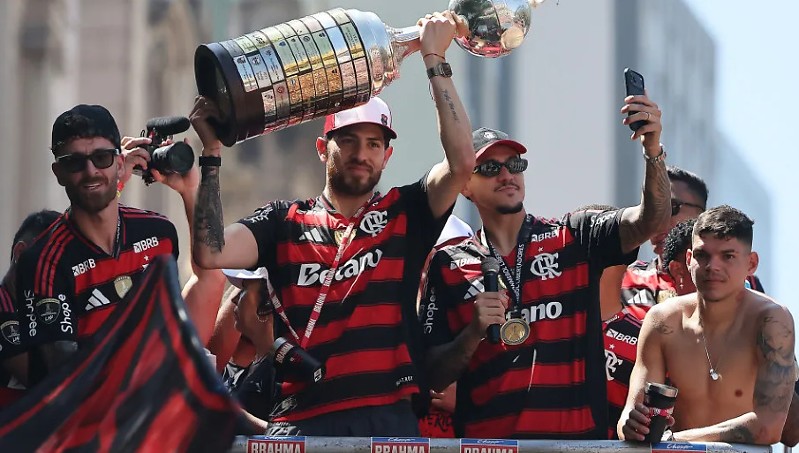 A festa do tetracampeonato da Libertadores do Flamengo teve um episódio curioso durante o desfile no trio elétrico. A taça exibida pelos jogadores apareceu remendada, chamando a atenção dos torcedores que acompanhavam a celebração.