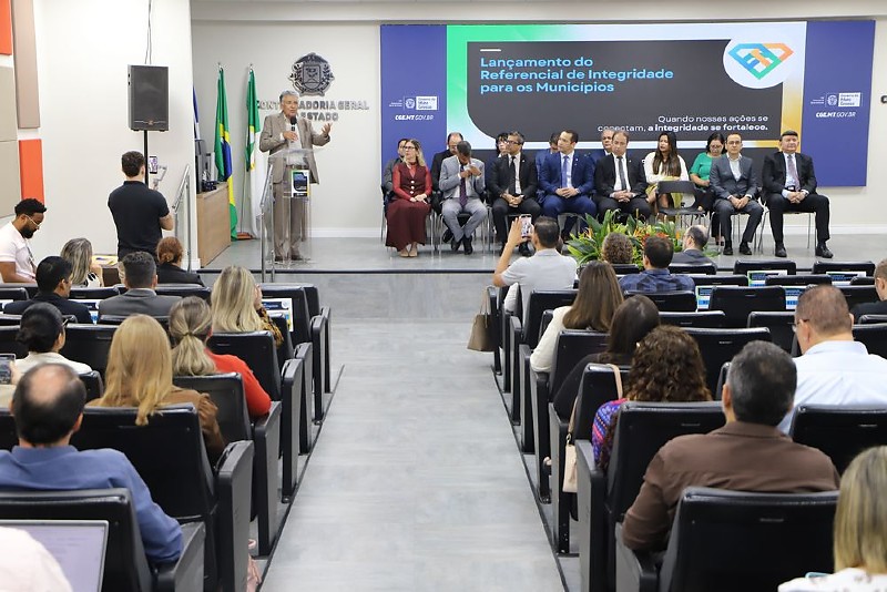 A Rede de Controle da Gestão Pública de Mato Grosso lançou, na manhã desta quinta-feira (26), o Referencial Técnico para Implantação de Programas de Integridade nos Municípios. O evento ocorreu no auditório da Controladoria-Geral do Estado (CGE-MT), no Centro Político-Administrativo, em Cuiabá, e marcou também a assinatura dos termos de adesão pelas prefeituras de Santo Antônio de Leverger, Cáceres e Ipiranga do Norte, além das câmaras municipais de Cáceres e Ipiranga do Norte.