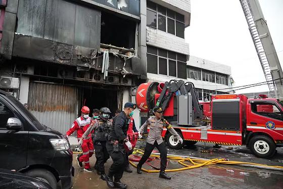 Imagens transmitidas pela Kompas TV mostraram dezenas de bombeiros tentando retirar pessoas do prédio, e alguns carregando sacos mortuários para fora da estrutura.