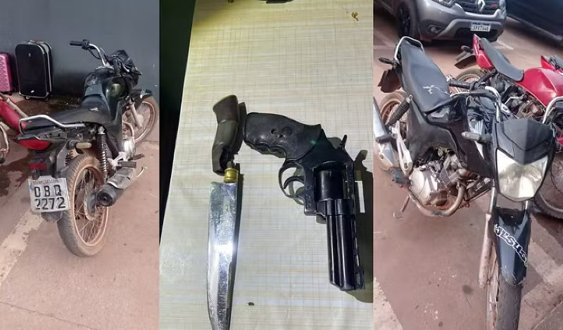 Com os suspeitos foram encontrados e apreendidos um revólver com munições e uma faca. Os referidos materiais ficaram sob responsabilidade da equipe de perícia para os devidos procedimentos.