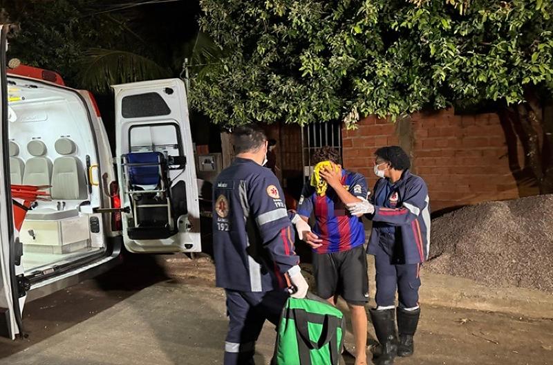 Conforme informações, um jovem foi esfaqueado durante uma discussão com o irmão. O caso aconteceu em uma residência próxima ao Anel Viário. Durante a discussão, um deles pegou uma faca e atingiu o outro familiar com um corte profundo na região da testa, de cerca de quatro centímetros, o que provocou exposição óssea.