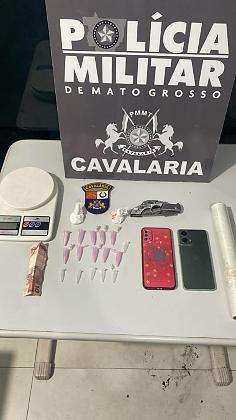 A equipe de Cavalaria da Polícia Militar de Nova Mutum prendeu um homem, de 27 anos, e apreendeu um adolescente, de 17 anos, por tráfico ilícito de drogas, em duas ocorrências na noite deste domingo (2.11), na cidade. Ao todo, foram encontradas três porções de cocaína e 14 porções de maconha.