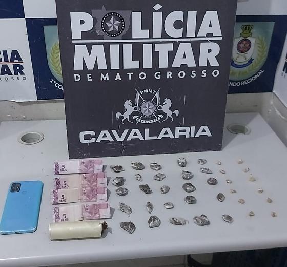 Equipes militares do Regimento de Policiamento Montado (Cavalaria) prenderam em flagrante, nesta segunda-feira (26.1), dois homens suspeitos por tráfico ilícito de drogas, em Cuiabá. Com os detidos foram apreendidos 37 porções de drogas, entre maconha e pasta base de cocaína.