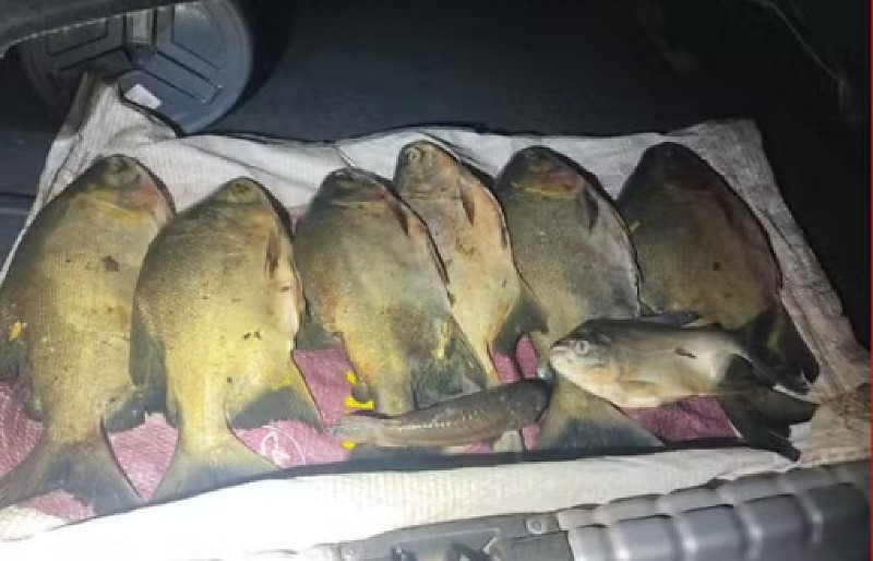 Ao chegar à chácara, os policiais encontraram os dois suspeitos já contidos pelo proprietário do pesqueiro. Durante a abordagem, com a dupla, foram localizados um saco contendo oito peixes da espécie tambatinga e uma rede de pesca, que teria sido utilizada no crime.