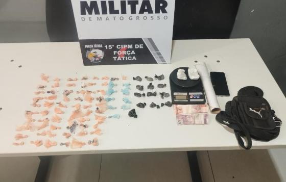Policiais militares da Força Tática do 2º Comando Regional, apreenderam, nesta sexta-feira (3.10), 104 porções de entorpecentes, entre maconha e pasta base de cocaína, e prenderam dois homens em flagrante, suspeitos por tráfico ilícito de drogas, em duas ações distintas, em Várzea Grande.