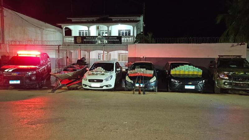 As forças de segurança apreenderam, na noite desta terça-feira (21.10), 103 quilos de entorpecentes, três veículos, três espingardas e uma embarcação, na região de fronteira em Cáceres (220 km de Cuiabá). Com as apreensões, o prejuízo estimado às facções criminosas é de aproximadamente R$ 1,5 milhão.