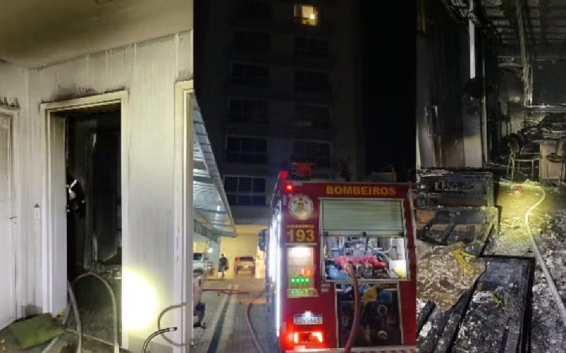 Em um vídeo feito pela equipe do Corpo de Bombeiros, é possível ver como ficou o interior do apartamento após o incêndio, com as fiações caídas e os móveis destruídos.