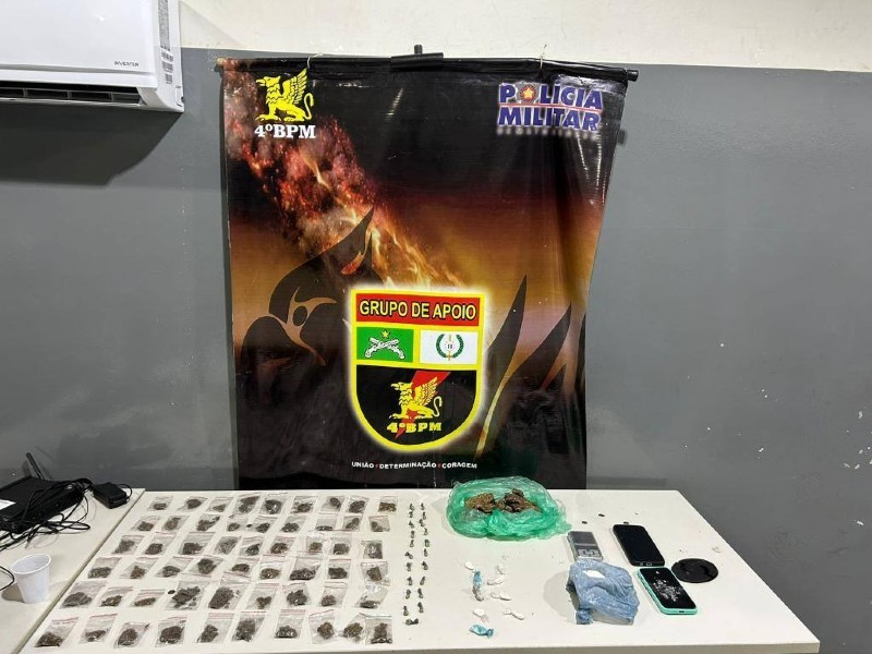 A prisão ocorreu durante patrulhamento do GAP do 4º BPM, no bairro Jardim Eldorado. No local, os policiais se aproximaram de um suposto ponto de venda de drogas e flagraram um homem saindo do endereço, com uma sacola nas mãos.
