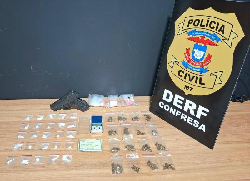 A Polícia Civil prendeu em flagrante um homem por tráfico de drogas, após ação policial realizada em continuidade a investigações que apuram a comercialização de entorpecentes na cidade de Confresa. O investigado passou por audiência de custódia nesta quarta-feira (8.10), após a prisão, realizada um dia antes.