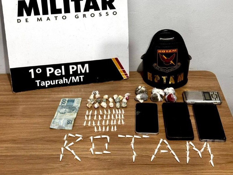 Policiais militares do Batalhão de Rondas Ostensivas Tático Móvel (Rotam) apreenderam três adolescentes faccionados por tráfico ilícito de drogas, na noite desta quarta-feira (8), no município de Tapurah. Com os menores, foram apreendidas mais de 100 porções de cocaína, pasta base de cocaína e maconha.