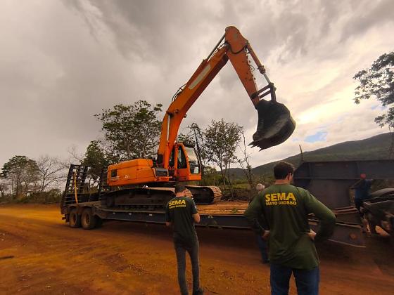 Durante a fiscalização em campo, o grupo embargou os 73 hectares de área, onde ocorriam as atividades de corte raso sem autorização, além de apreenderem uma escavadeira de esteira utilizada de forma irregular.